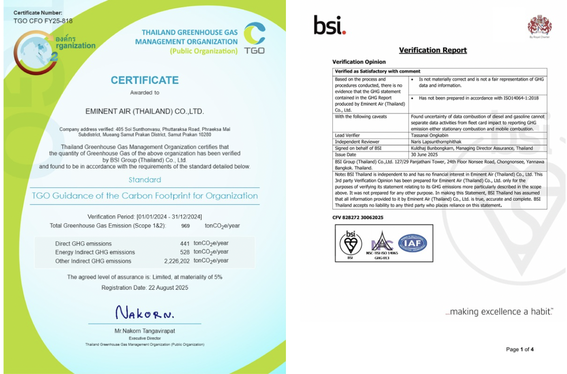 ทั้งสองมาตรฐานนี้ถือเป็นหลักเกณฑ์สำคัญที่ได้รับการยอมรับทั้งในและต่างประเทศ สะท้อนความมุ่งมั่นของอีมิแน้นท์แอร์ในการดำเนินธุรกิจที่โปร่งใส รับผิดชอบต่อสิ่งแวดล้อม และขับเคลื่อนไปสู่การพัฒนาอย่างยั่งยืน